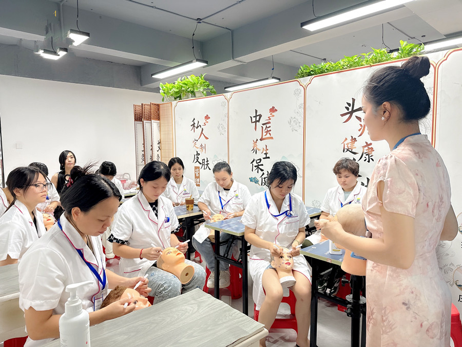 廣西學(xué)美容面部、廣西學(xué)面部提升:想要掌握撥筋棒點按面部xue位的手法,在此之前,同學(xué)們必須跟著老師通過在假頭模上練習(xí)認(rèn)識和熟知不同xue位的作用后,才能正式開啟真人操作。